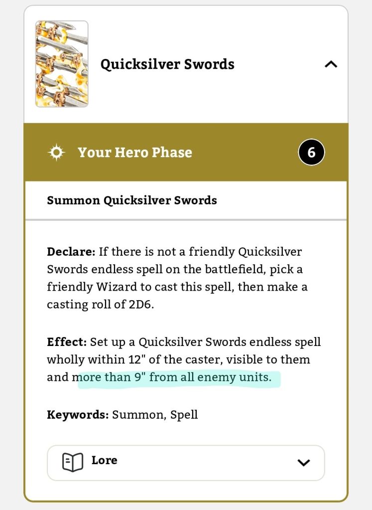One common question raised after the original piece was published is that the spells used to summon Manifestations specify that they need to be set up 9″ away from other units. For example: