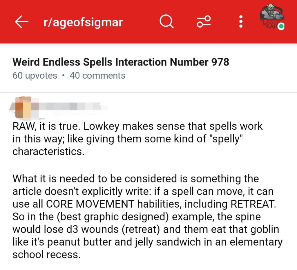 Nah. If anything, it’s a minor nerf overall – the main interaction that this opens up is using your own Endless Spells to shut down theirs, and prevent them charging into your army. This will only come up very rarely, but to the extent that it does, there should be slightly fewer occasions where Endless Spells kill proper units you paid points for. As dumb as it is, this interaction is not making Endless Spells even more broken.