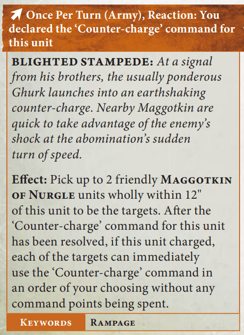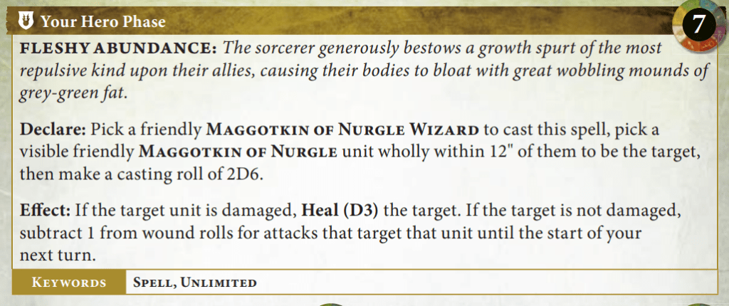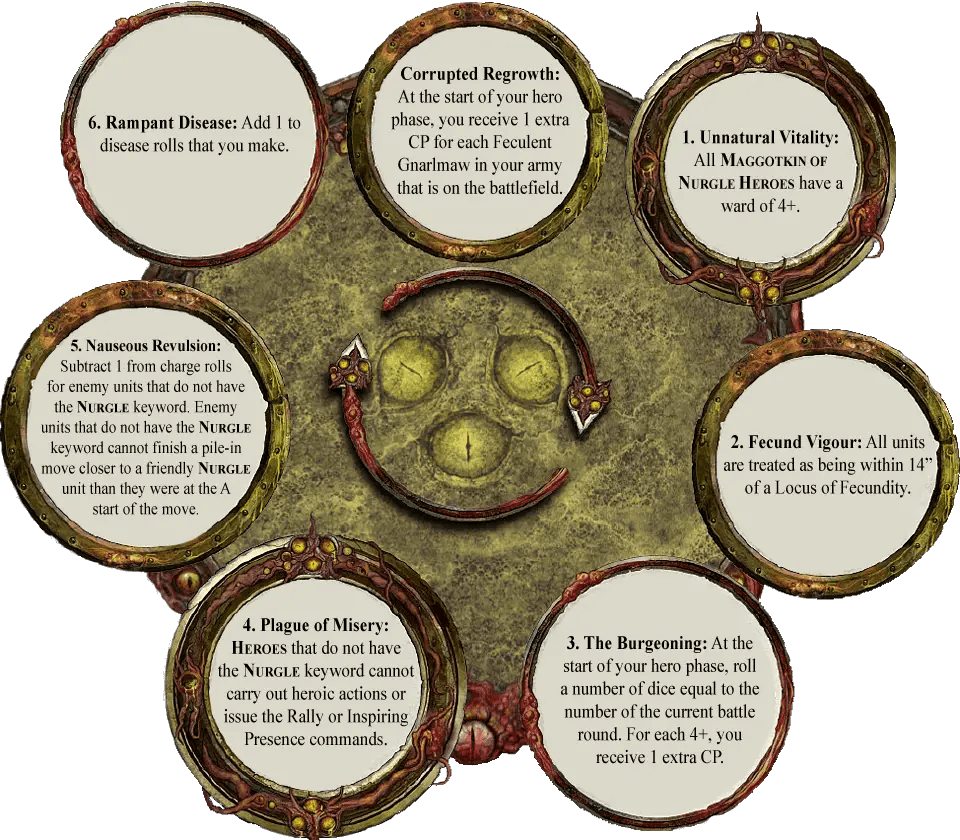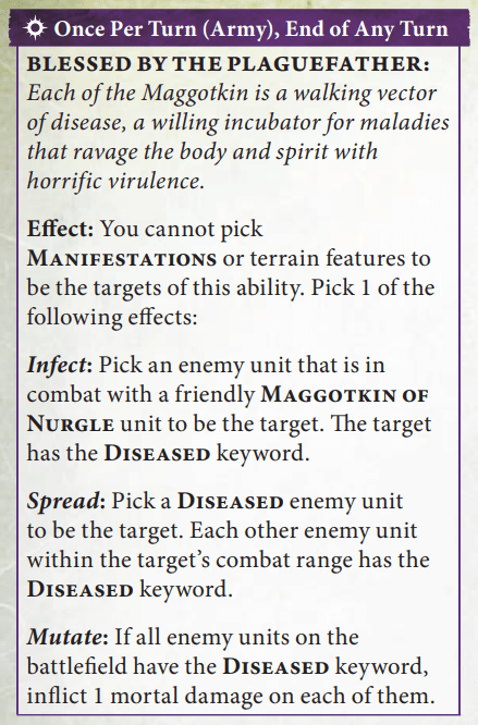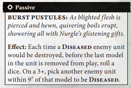 In fairness, reducing allegiance abilities for the Index was a tough problem for a lot of factions. Especially armies like Nurgle that relied on a lot of good allegiance abilities. That said, Nurgle’s one and only allegiance ability is pretty underwhelming: