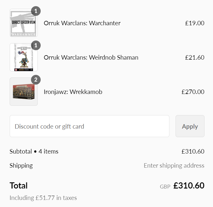 I’ve used GW sticker prices today for comparison but since this is a noob-friendly article I will reiterate: do not buy directly from GW if you have any other choice. You’ll always get more competitive prices by going through an independent store, plus you’re supporting a small business, so that’s always my first port of call.