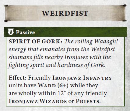Ardboyz are a truly efficient unit, offering a solid volume of health on 3+ saves and 6++ wards. They can be tough to shift once they plant their feet on an objective and if your opponent charges in, you can get them up to rend 2 damage 2 with a lucky Warchanter roll.