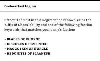 Now, as we see in the rules for the Godmarked Ascendant Regiment of Renown: