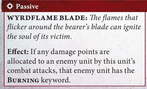 If you are looking to inflict more lasting damage you can spread the love around with a Wyrdflame Blade, allowing you to light up as many units as you can reach with auto-hit mortals: