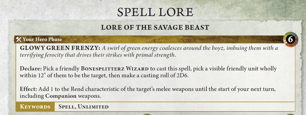Longbeards will remember similar tech on a far grander scale back in AOS1, so maybe this truffle-hunt actually was intended? They’re mostly “Hey that’s cool” rather than “Oops I just broke it”, largely because the ROR units you’re buffing aren’t reinforced so there’s a ceiling on how impactful most of these will ever really be. That’s OK though – it’s still fun, and I’d hope we never get so jaded that we can’t enjoy the joie de vivre of a good combo for its own sake.