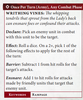 And there’s an odd little interaction for the Twistweald where they only have to be isolated from friendly Sylvaneth units. So they can still use Eruption of Thorned Vines even if they’re nearby to ROR units: