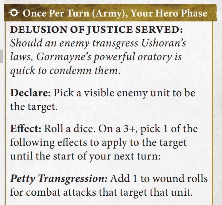 Meanwhile the Grand Justice Gormayne’s Petty Transgression is another example of picking out an enemy unit, and then going to town on it with anything in your own list, RORs included: