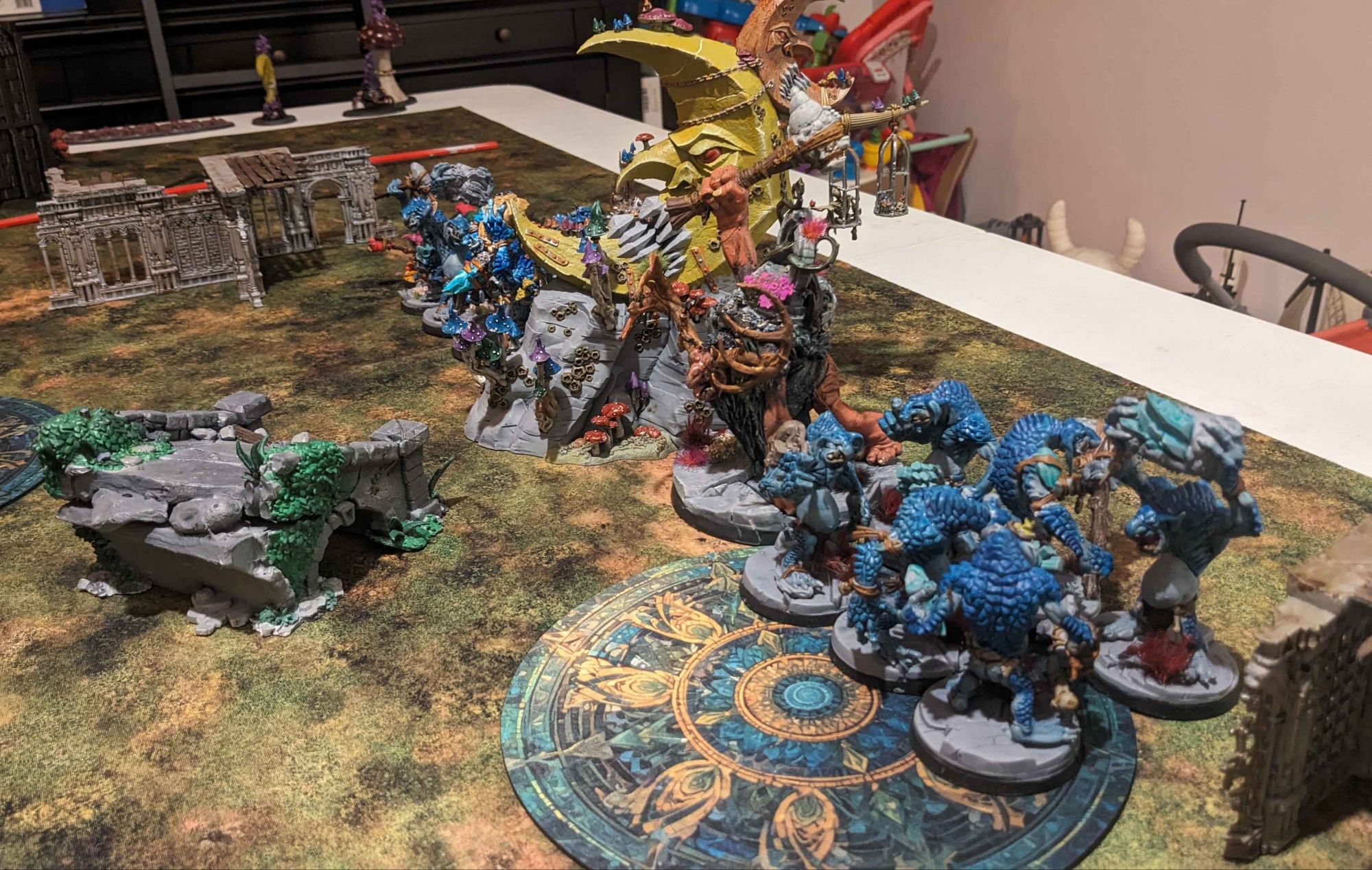 Xander’s feedback on the Darkoath is that they weren’t really tested by the Beasts of Nurgle list, but they were an effective screen/roadblock, and it’s worth noting that you can pledge them and get, for example, +20 attacks on a blob of 20 cheap Marauders. Savagers will probably struggle with the current battleplans, but reinforced Marauders and Fellriders can make a contribution.