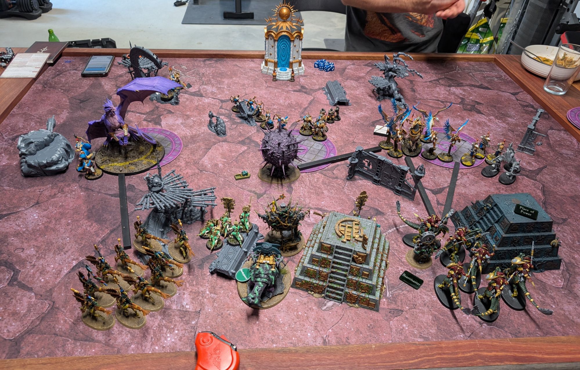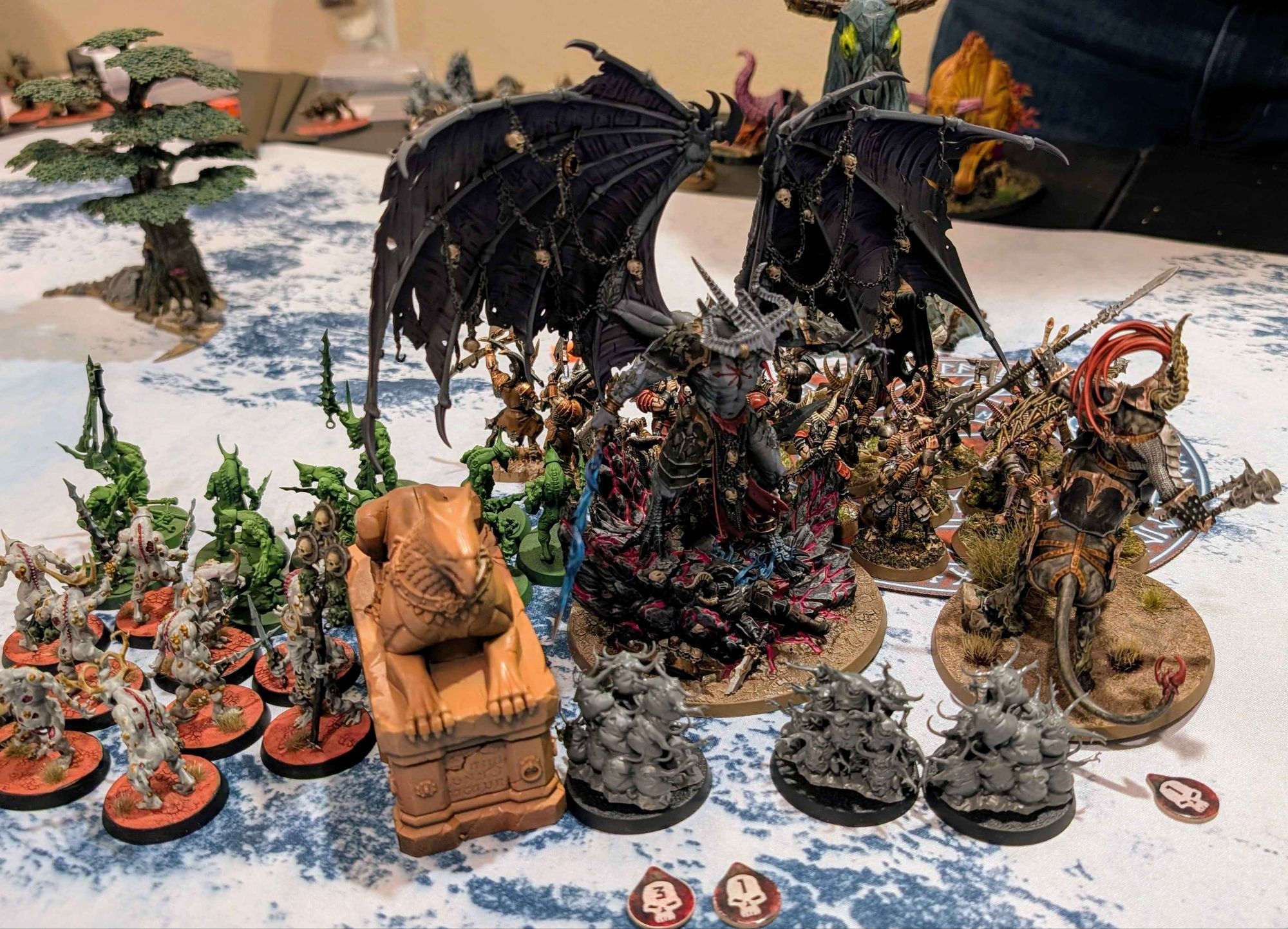 Let’s hear it for Thomas, who took his campaign army to a GT! Thomas achieved an excellent 3-2 result with his Nighthaunt, so that’s 3 wins in the bag for his team, taking the scalps of COS, SCE and S2D. One key learning point to come out of it was that Soulscream Bridge can pull units out of combat without counting as a retreat – but only in that player’s own movement phase (so not via Magical Intervention).