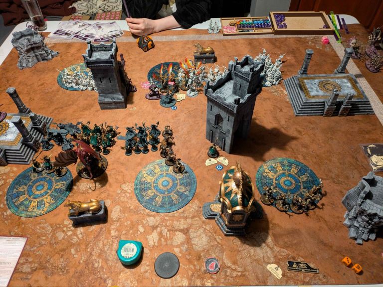 Will‘s Cities of Sigmar however took a beating from Nighthaunt: It was a great game, but I lost pretty solidly. I went first on turn one and advanced up pretty cautiously, toeing on to the middle objective and up to the center for Seize the Center. I weathered my opponent’s attacks pretty well, but he got the double and started getting some solid kills in. Then I tried to kill Lady Olynder with Callis and Toll plus Galen Ven Denst, but it wasn’t enough and he was able to mop up the rest of my army.
