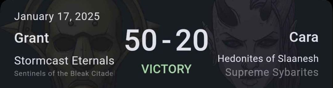 Grant’s Stormcast picked up some solid wins against Slaanesh and LRL in this round, in preparation for taking the list to Tracksuit GT in Round 3.