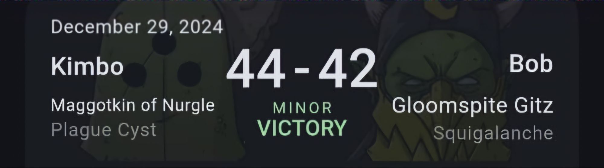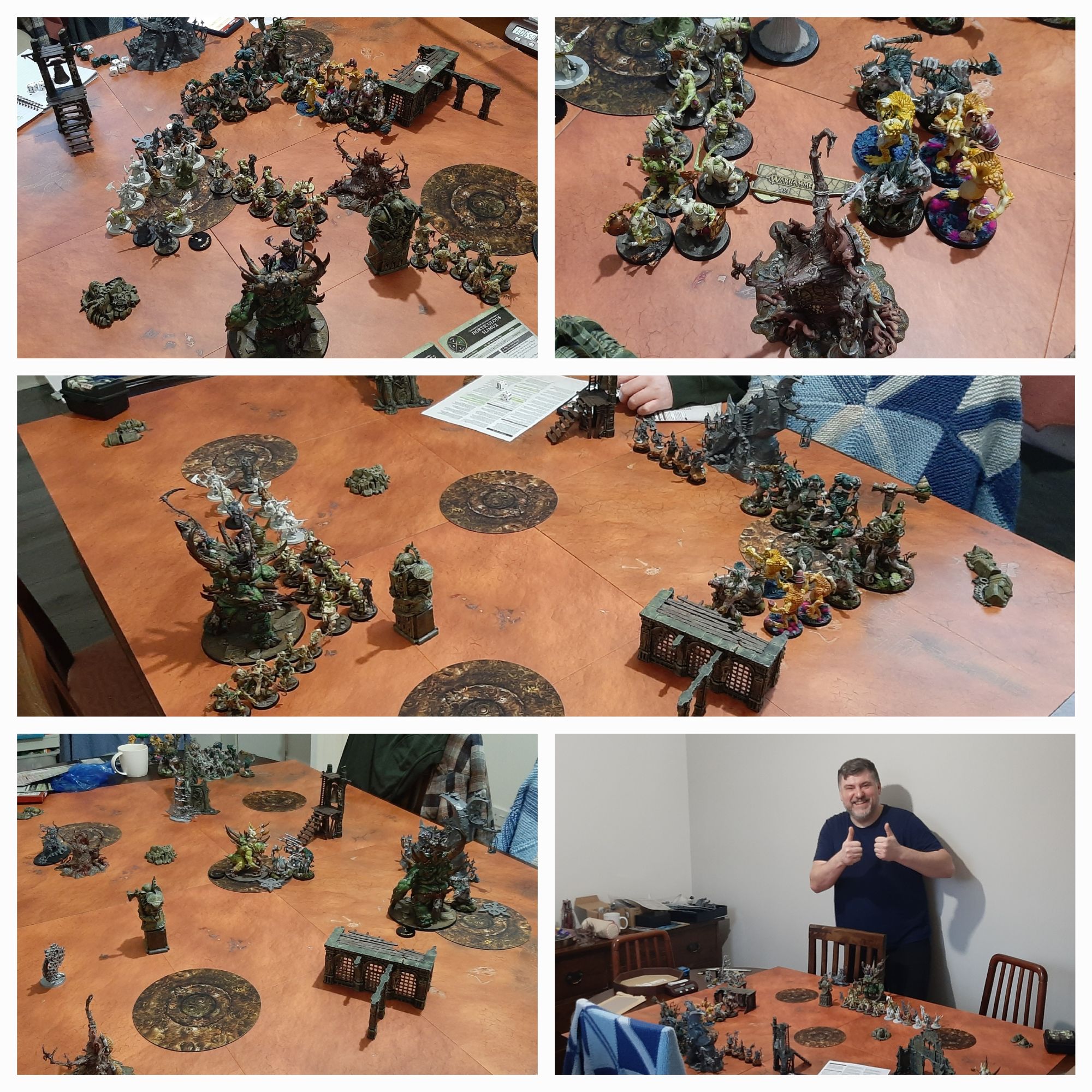 And finally John Triplow had an absolute banger of a game with his Nurgle into Rockgut-heavy Gloomspite. The Battle of the 5+ Wards went Papa’s way by the narrowest of margins: