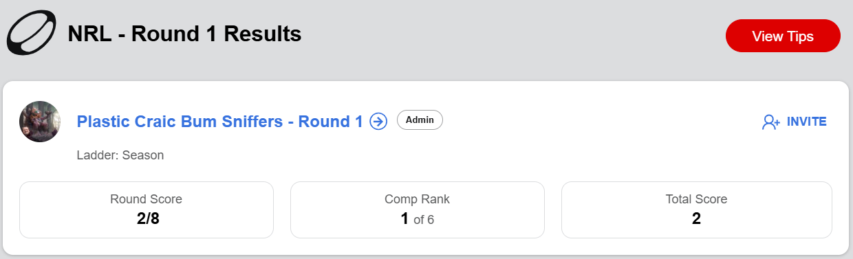 We’re going with two Joker rounds per player (for double scores), so if you fall behind, you’ve got a puncher’s chance of catching up. And if you’re worried that you don’t know enough about Aussie sports to join in, bear in mind that there are Penrith supporters involved in this comp, and you definitely know more than them.