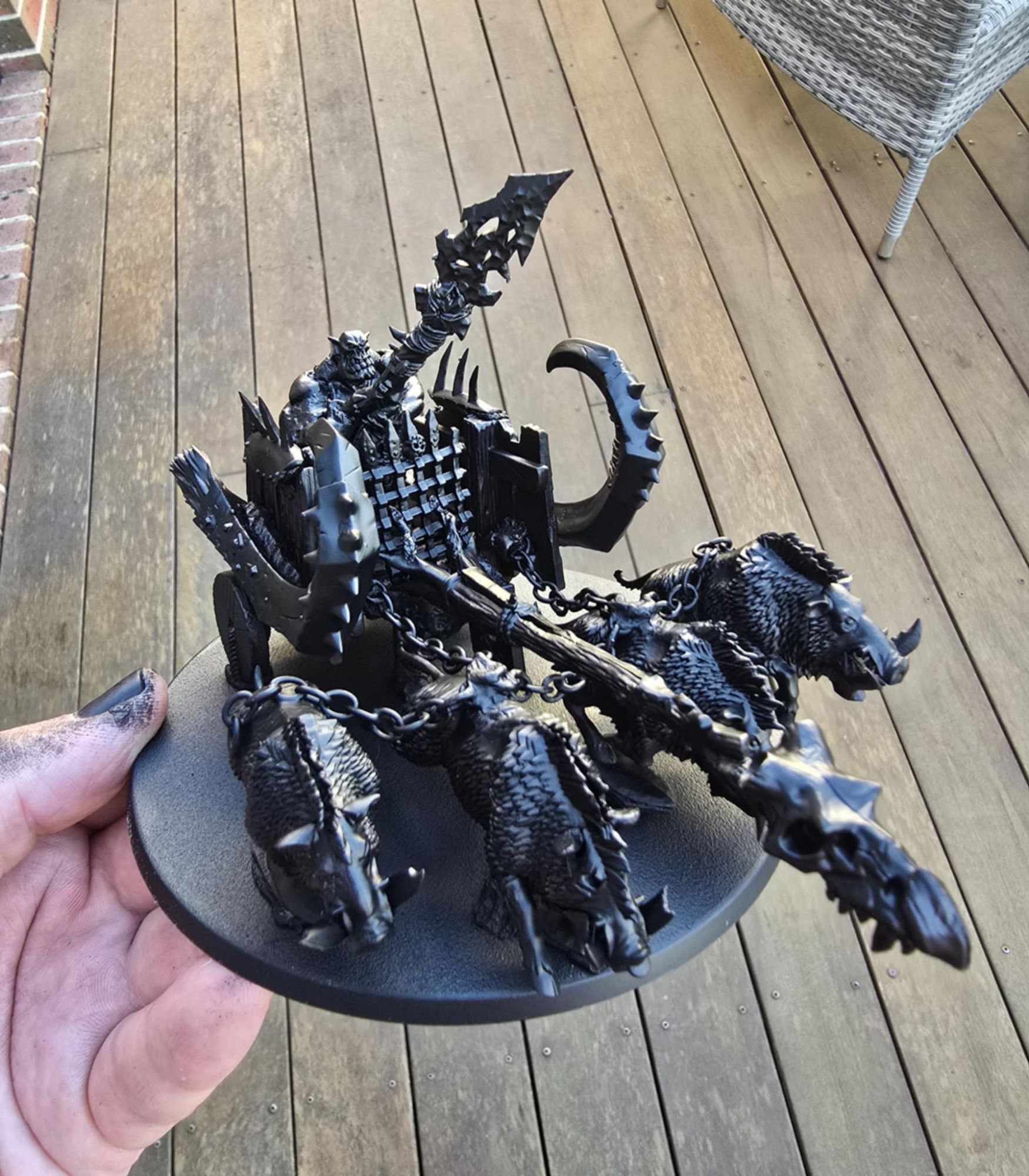 by Peter Atkinson I’ll be repping the Bonesplitterz at Vic GT this weekend, including a couple of custom minis. GW has never released anything for this army, so I’ll just make my own models – and use them with existing Warscrolls. Conversion 1: Squeals on Wheels How do you make a centrepiece unit for an … Continue reading Swine and Punishment: Bonesplitterz at Vic GT
