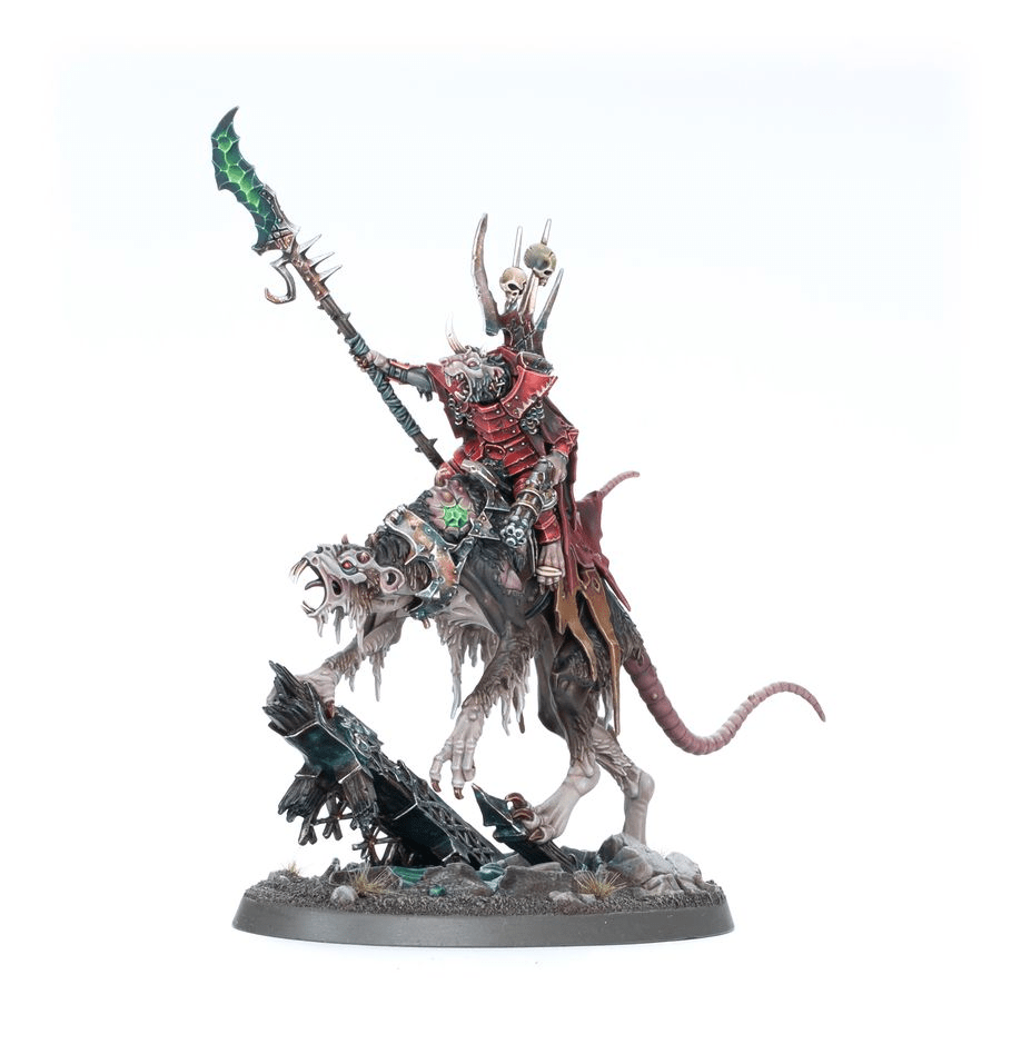 A nice bit of Rat on Rat action. This may not be everybody’s pick for the coolest model but for a starter box piece, it’s an impressive example of what AOS can do. I like it for incorporating so many classic Skaven elements: armor, trophy rack, embedded warpstone and putting it on such a new type of starved-looking mount. Seriously, the Gnawbeast looks like it’s about to drop dead.