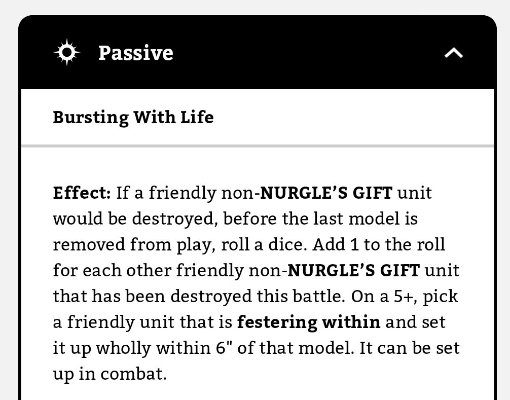 If you’re planning on tagging people with Sporesplattas, please consider using the Nurgle Regiment of Renown too: