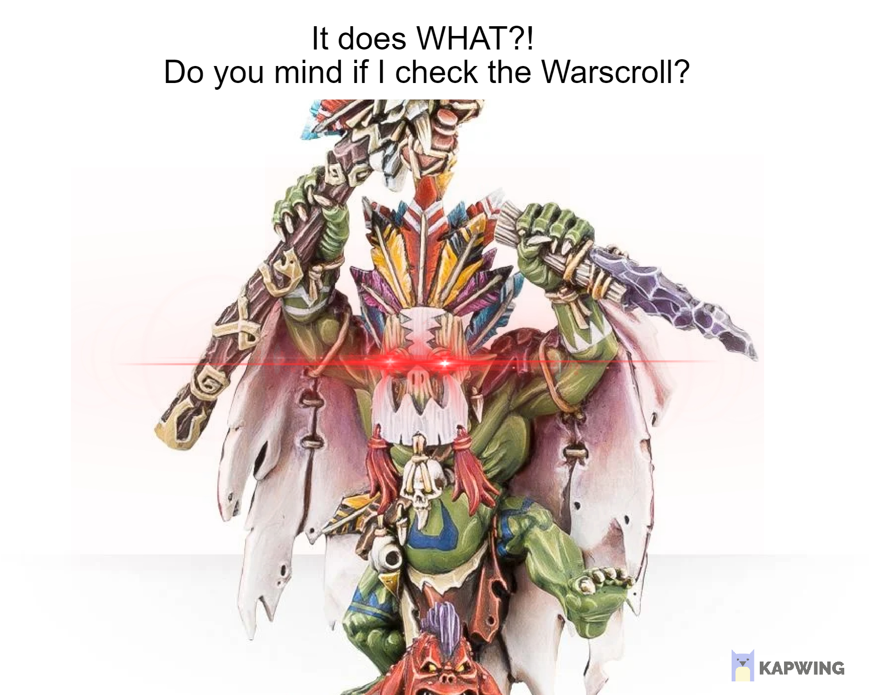 Mightiest Destroyers: Ladies and gentlemen, we have our first FAQ requirement! I still don’t know what they mean by Megabosses, and whether or not that includes the Maw Krusha or Gordrakk, but at least GW will have the opportunity to address that before these rules are legal. It amounts to a bribe to jam a Megaboss of any stripe into your list, when ideally they should just have better warscrolls1: But it’s a bribe that I may be willing to accept2.