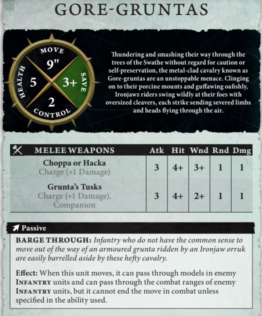 You lose the charge mortals, so I wouldn’t even consider the new GGs in the Pigs AOR, which is the most successful Ironjawz build currently. You need to remember here that the D6 charge mortals are an enhanced version of the warscroll ability, not a standalone rule: so when you lose the one, you lose the other.