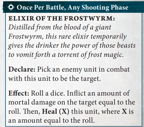 It adds a bit of survivability to what really is a butter-soft Monster these days, and can finish off a crucial unit when you get bogged down. It’s also one of those “I forgot to use it” artefacts, so we will see how it goes.