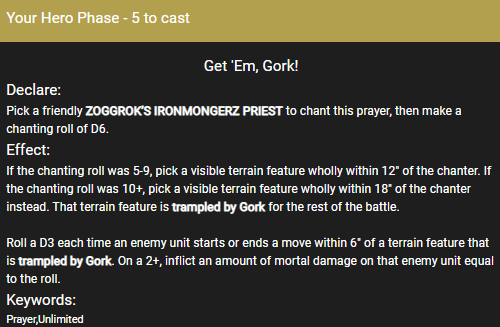 I Introduce to you – the best prayer in the game, Get ‘Em, Gork! with a Prayer value of 5 making a terrain feature the most chaotic thing for your opponent to deal with.
