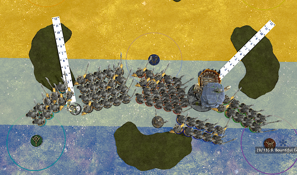 Another illustration of how powerful this can be is that I’d often deploy my Warchanters on the line so they can get that early game trampled terrain: