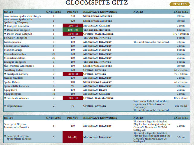 A splash of red here and there isn’t the end of the world, because even allowing for the lazy non-Battletome they got, a lot of units were very sharply pointed. We’d seen the rise of the Double Doom Diver list for example, so we can’t really have many complaints with +10 for them. And 150-point Dankholds are a great little unit.