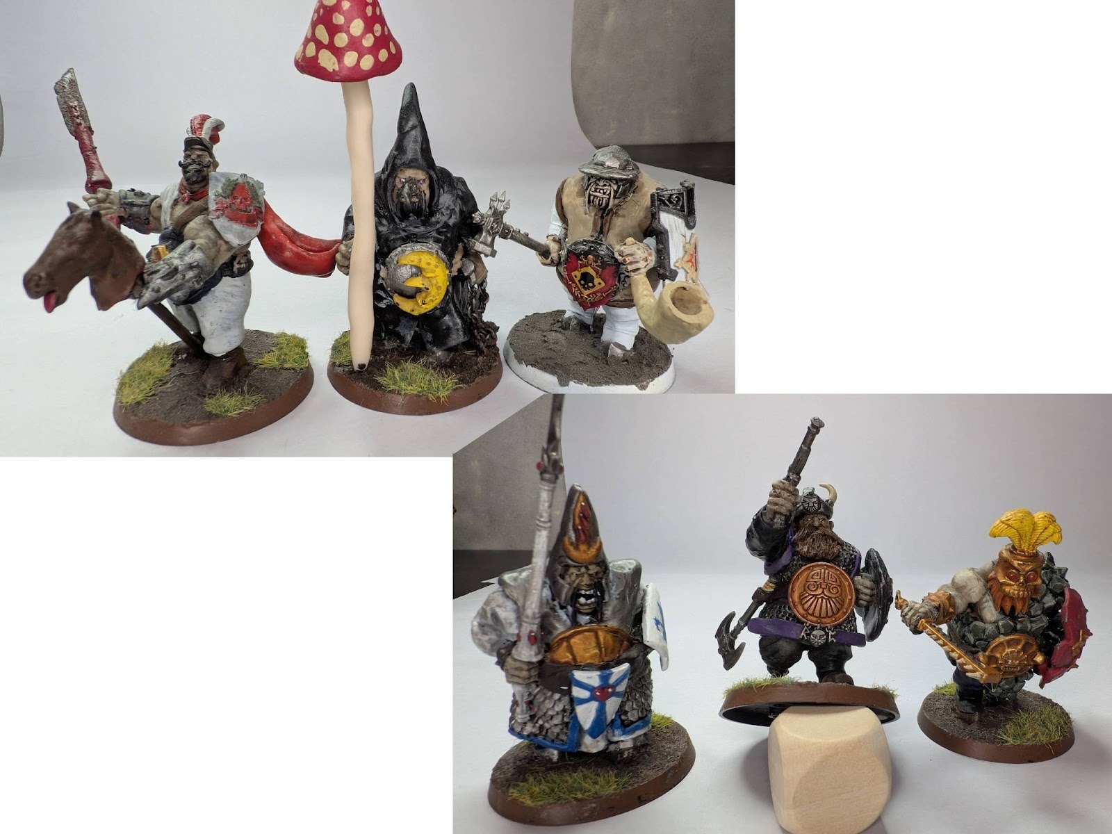 Champion: Empire Knight. Standard: Moonclan Git. Musician: Cities of Sigmar Steelhelm. Other Guys: High Elf Spearman, Dwarf Warrior, Lizardman Saurus Warrior