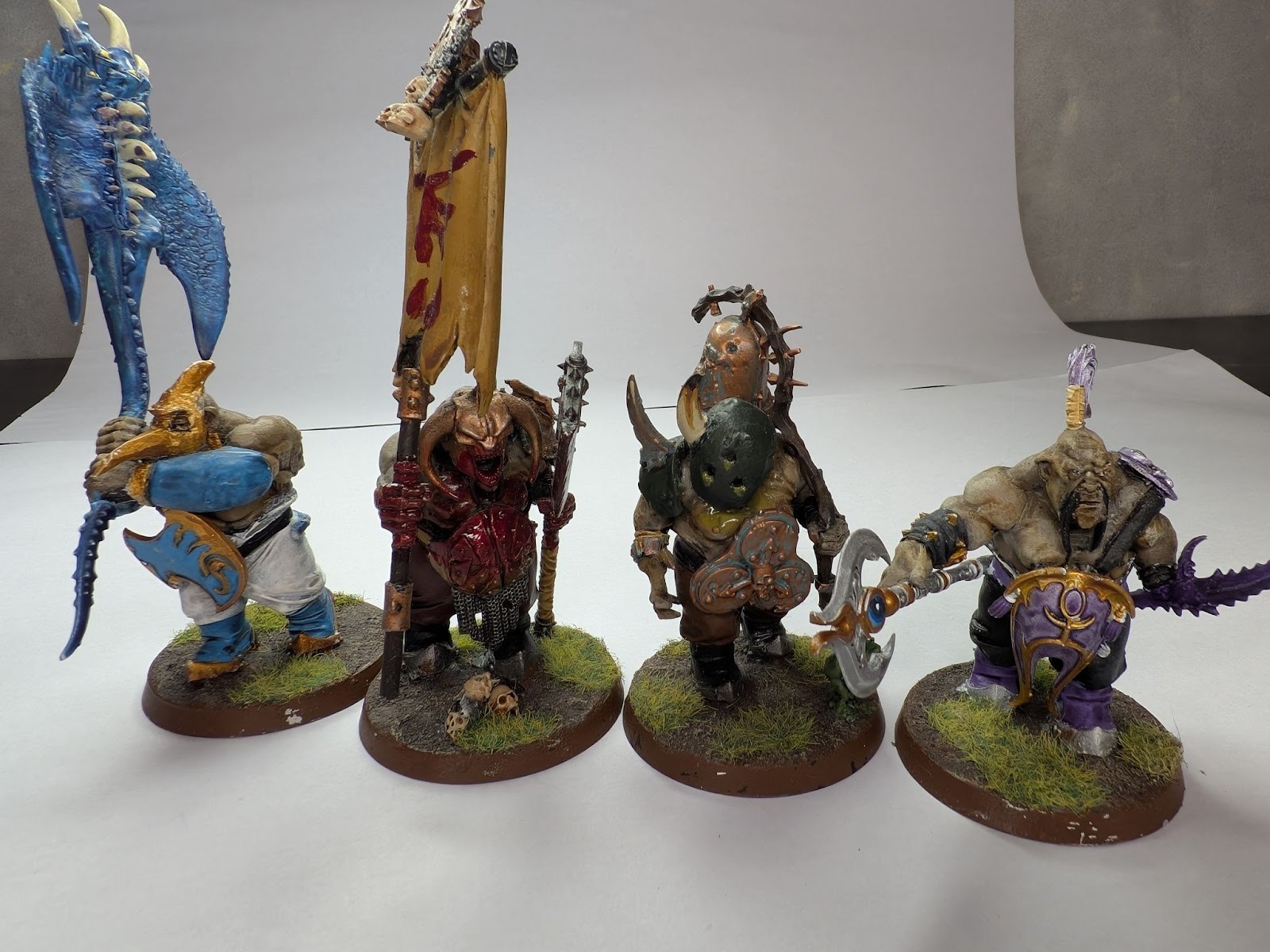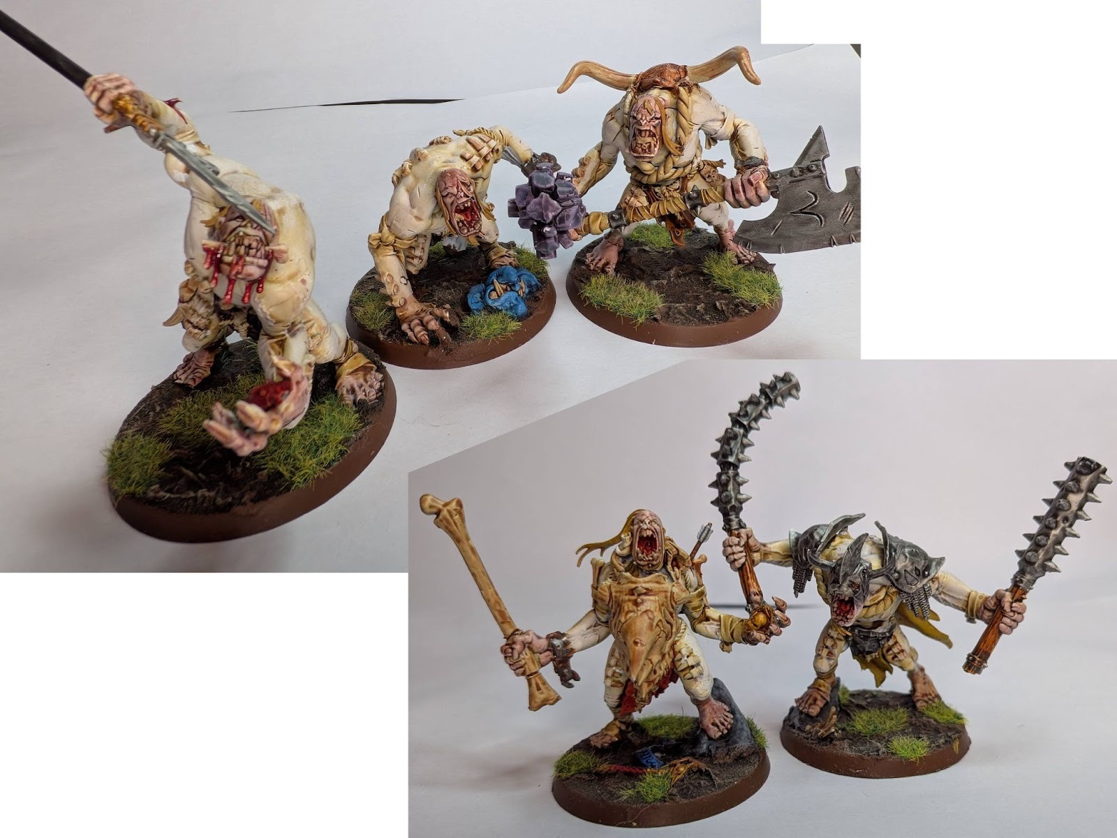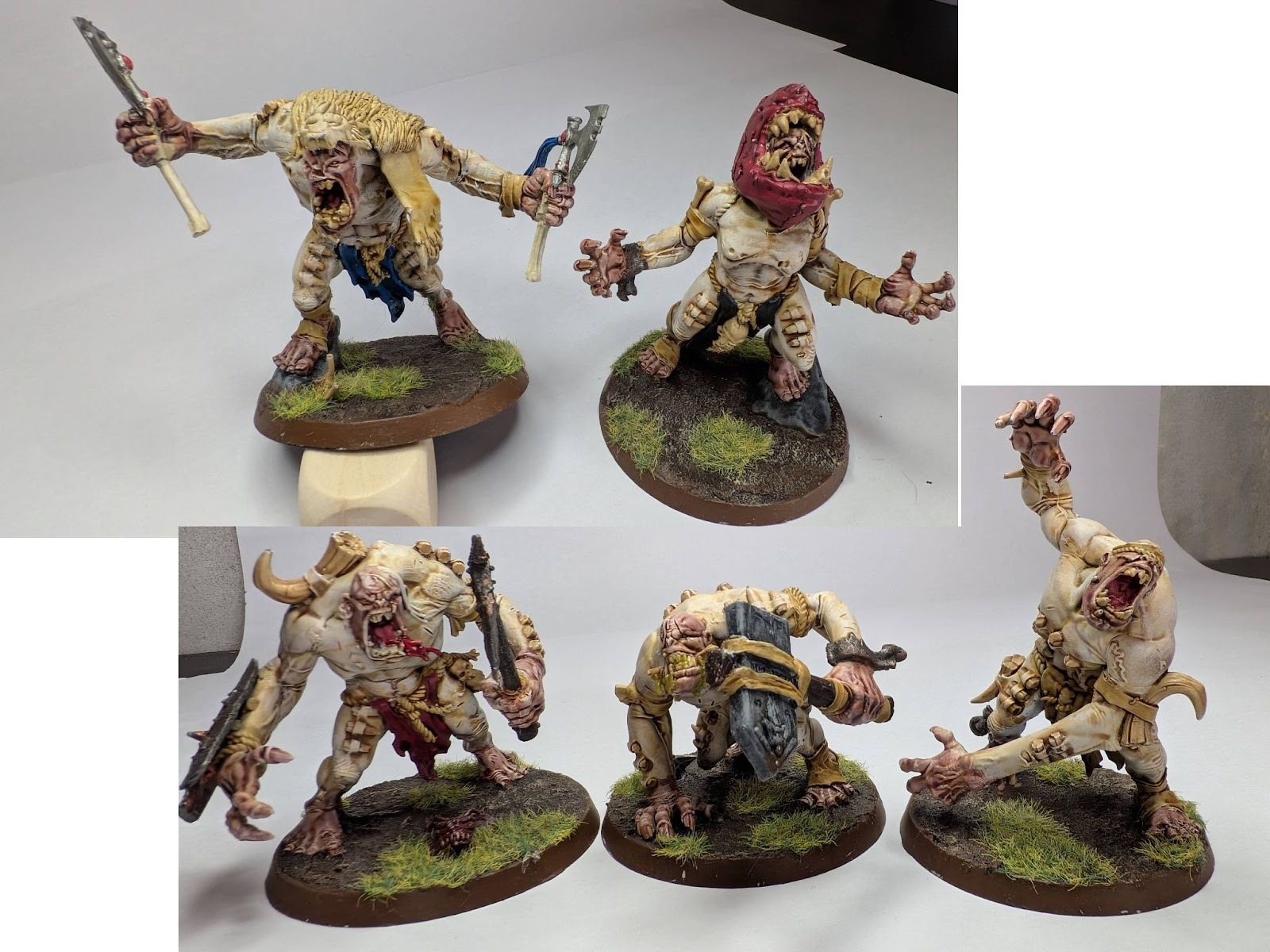 So after a break from the hobby to sulk about The End Times, when I finally caved to peer pressure and picked up Age of Sigmar at the top of 3rd edition, the first recipients of some nice new round bases were my beloved Maneaters. And after taking them to my first one-dayer at my FLGS and getting comprehensively battered, I put them back in the cupboard the moment I got home and immediately started a Nighthaunt army. And while it was fun to occasionally win a game, and shove my two Mourngul around the table4, I kept a candle burning for the Maneaters with the knowledge that a nice new Ogre battletome would eventually land… and that candle got pretty toasty when WarCom articles appeared talking about a heroic trait to allow all-Maneater armies, and make them actually work!