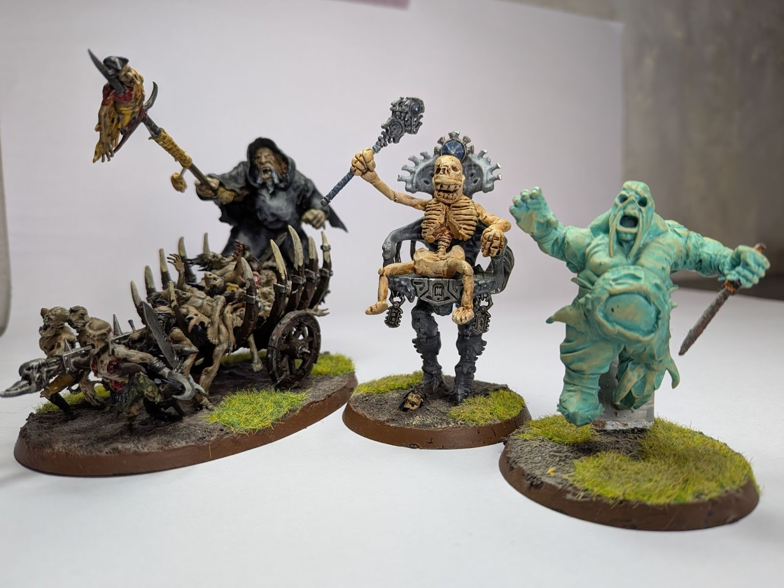 Slaughtermaster: Necromancer on Corpse Cart. Butchers: skeleton on Ossiarch Soulmason throne, generic Nighthaunt gheist