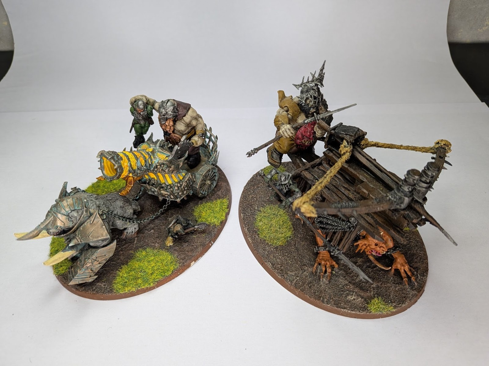 You might have noticed a heavy Gutbusters slant to my army, and that’ll be the “I started this in Warhammer 6th edition” mindset. But this is a kitbashing exercise first, so we needed some representation of Ogres riding things into battle, and this pair actually made it into a tournament or two last year.