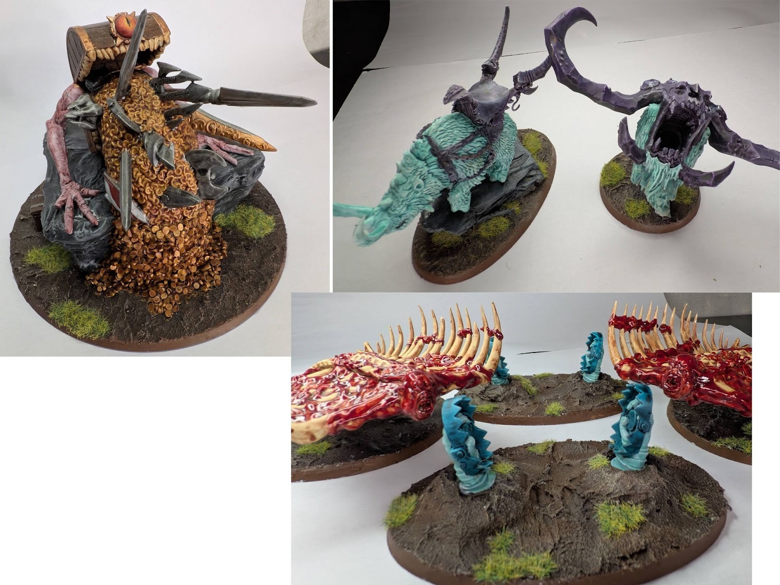 Finally concluding that Gee Dubs had given up on Maneaters after the first hookup during the Bush administration, I decided to take a different approach to get mine on the table. While I’m sure Coolest Army trophies must have existed back in the square base era5, it’d never occurred to me to use my green stuff fixation to build an army specifically geared to win one. With visions of finally winning a trophy that wasn’t a spoon6, I started shunting the Maneaters back onto 40mm round bases, as well as building even more to populate a 2000 point army, and in no time at all, I had the core of The Maneater Legion founded – an entire army of Maneaters, banding together to fight for the absolute highest bidder.