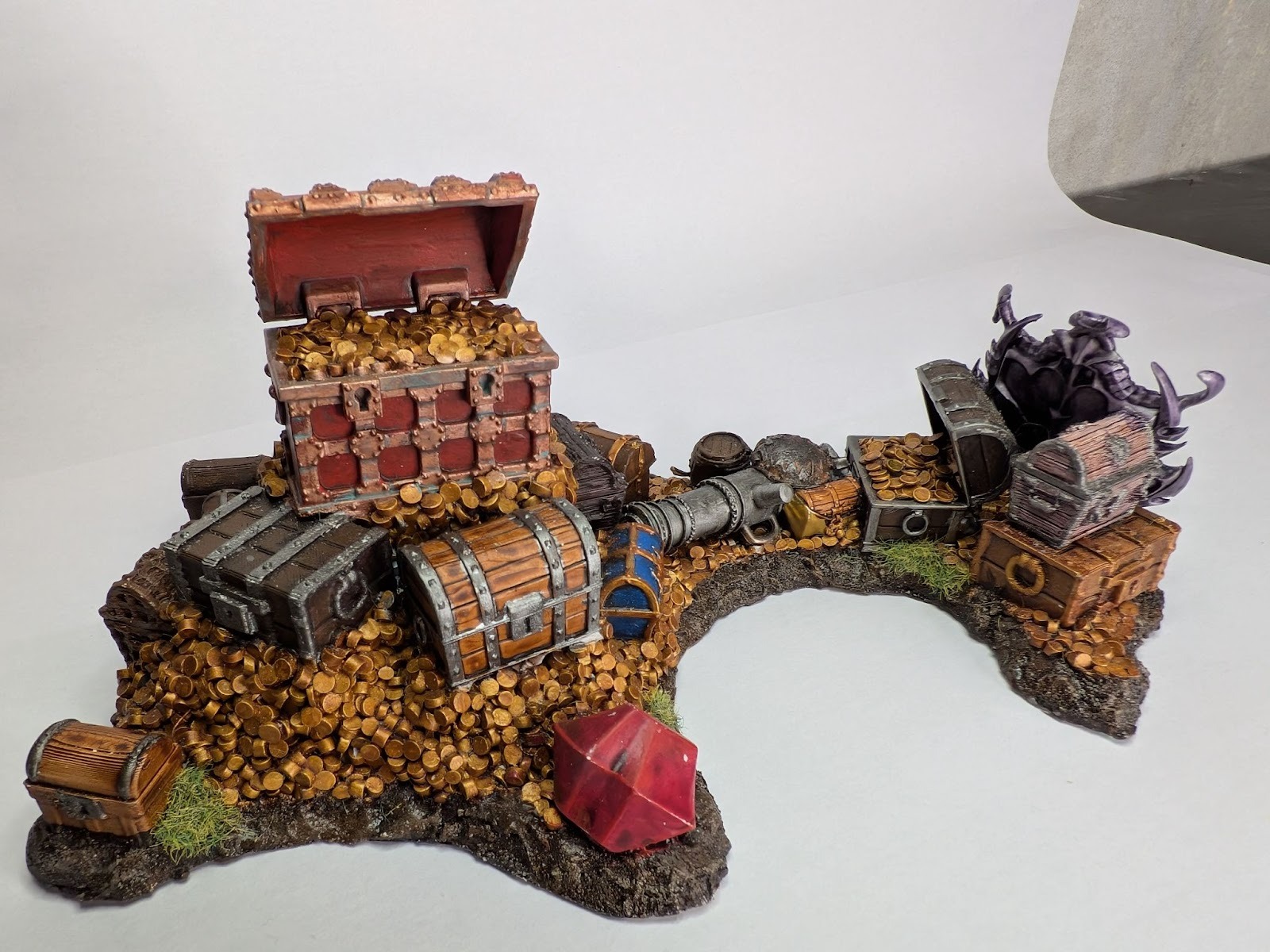 Well, what horde of mercenaries isn’t going to be motivated to defend its big pile of treasure and paychests? And what kind of trophy-hunting kitbasher would I be if I didn’t try and kitbash my own faction terrain?9