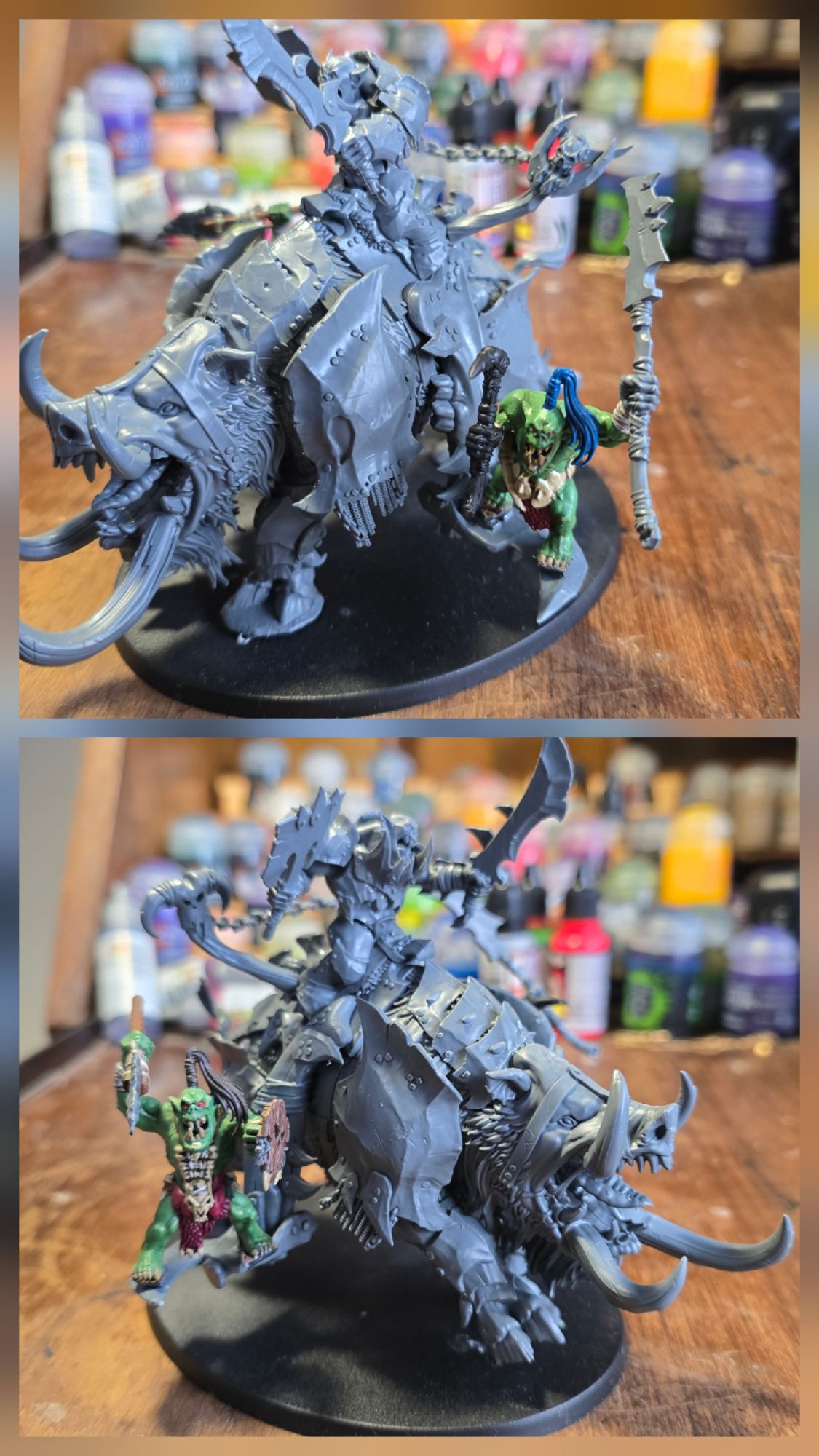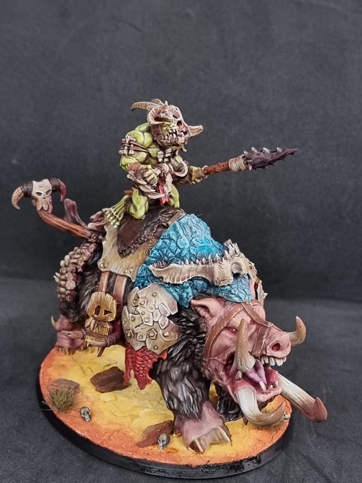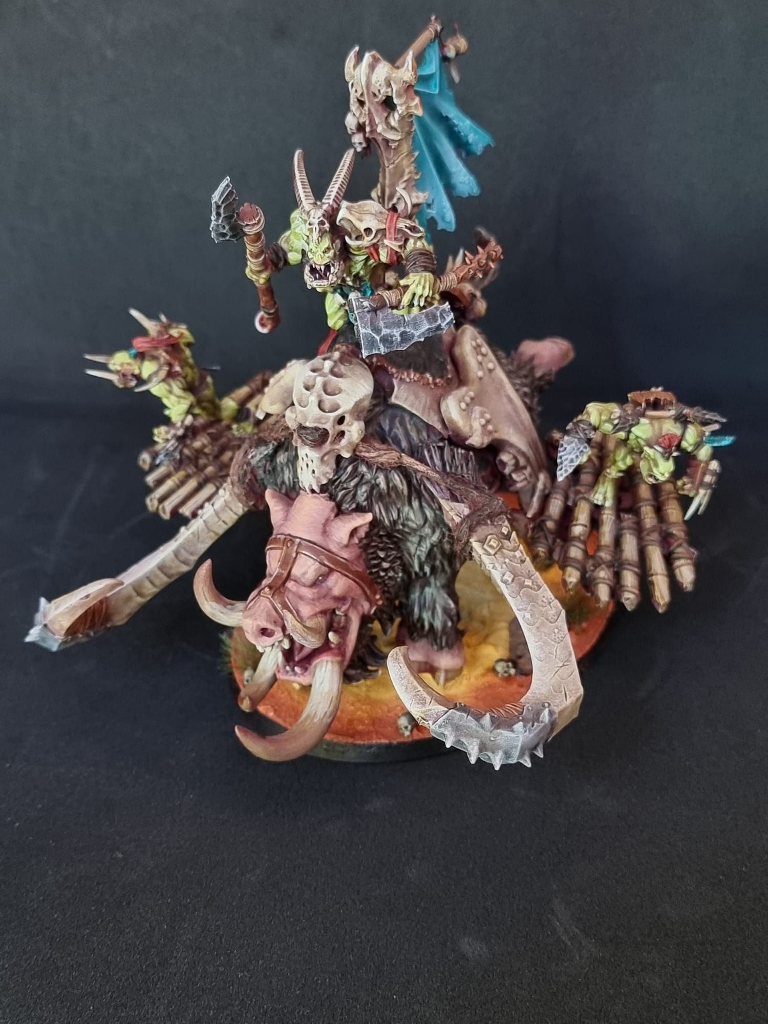 I showed you above how I made a big chariot pulled by a full team of Boars – I always thought that would be a cool centrepiece for Bonesplitterz and since they never got any mode releases, I just made my own. That’s on the same base as a Leviadon for example. This isn’t a path I’m going down myself, but I have heard chatter about it from other people. Food for thought.