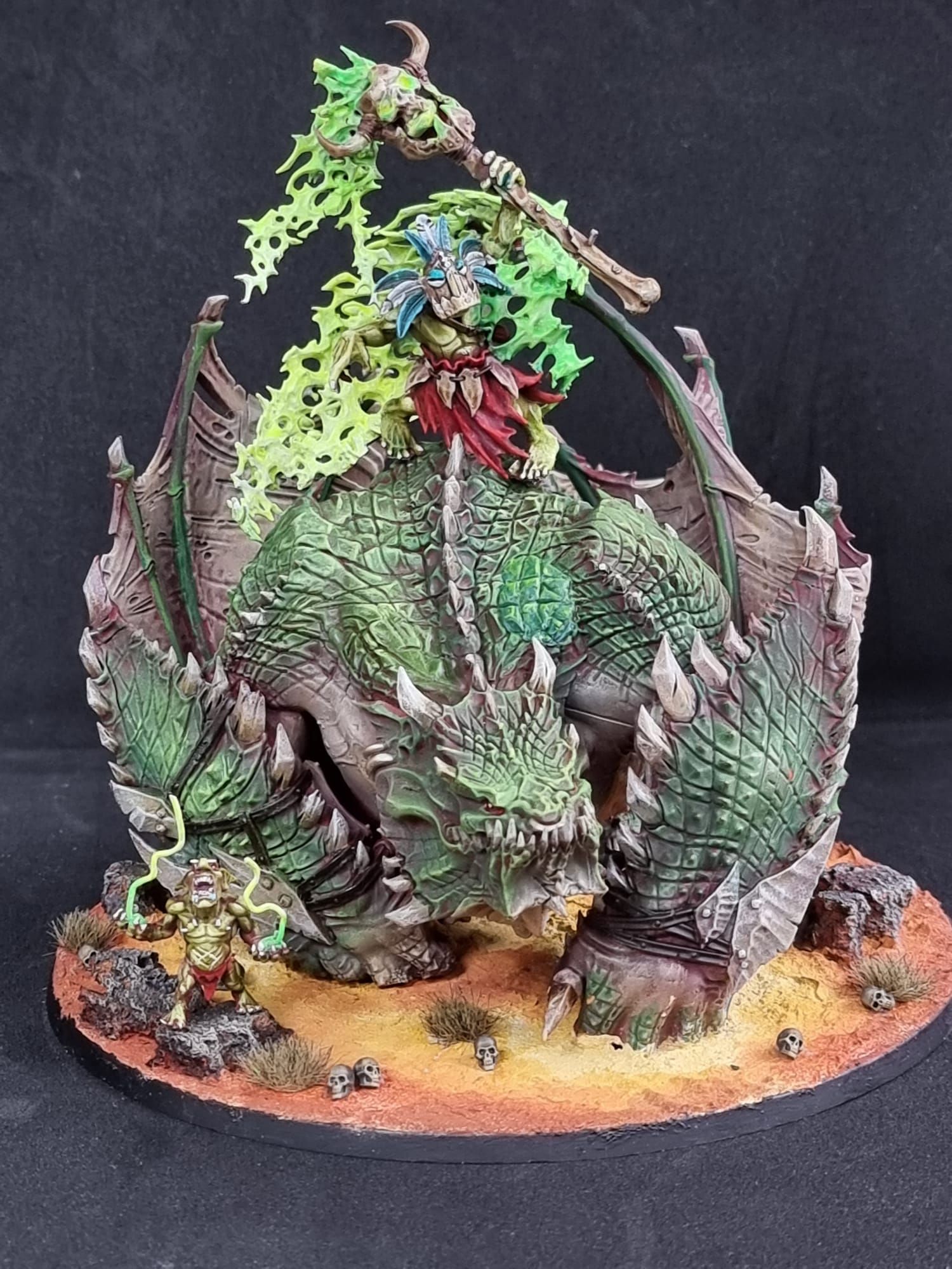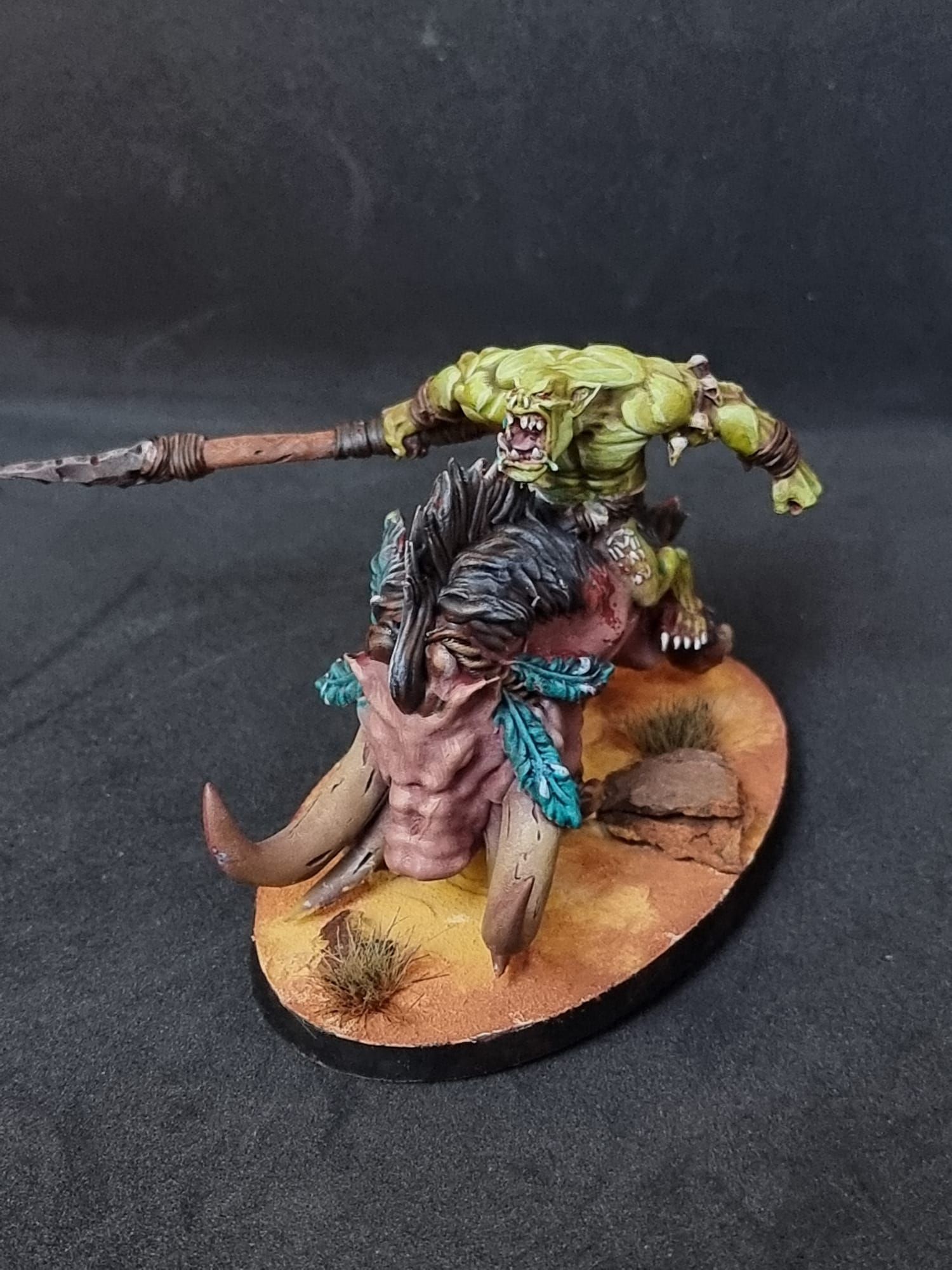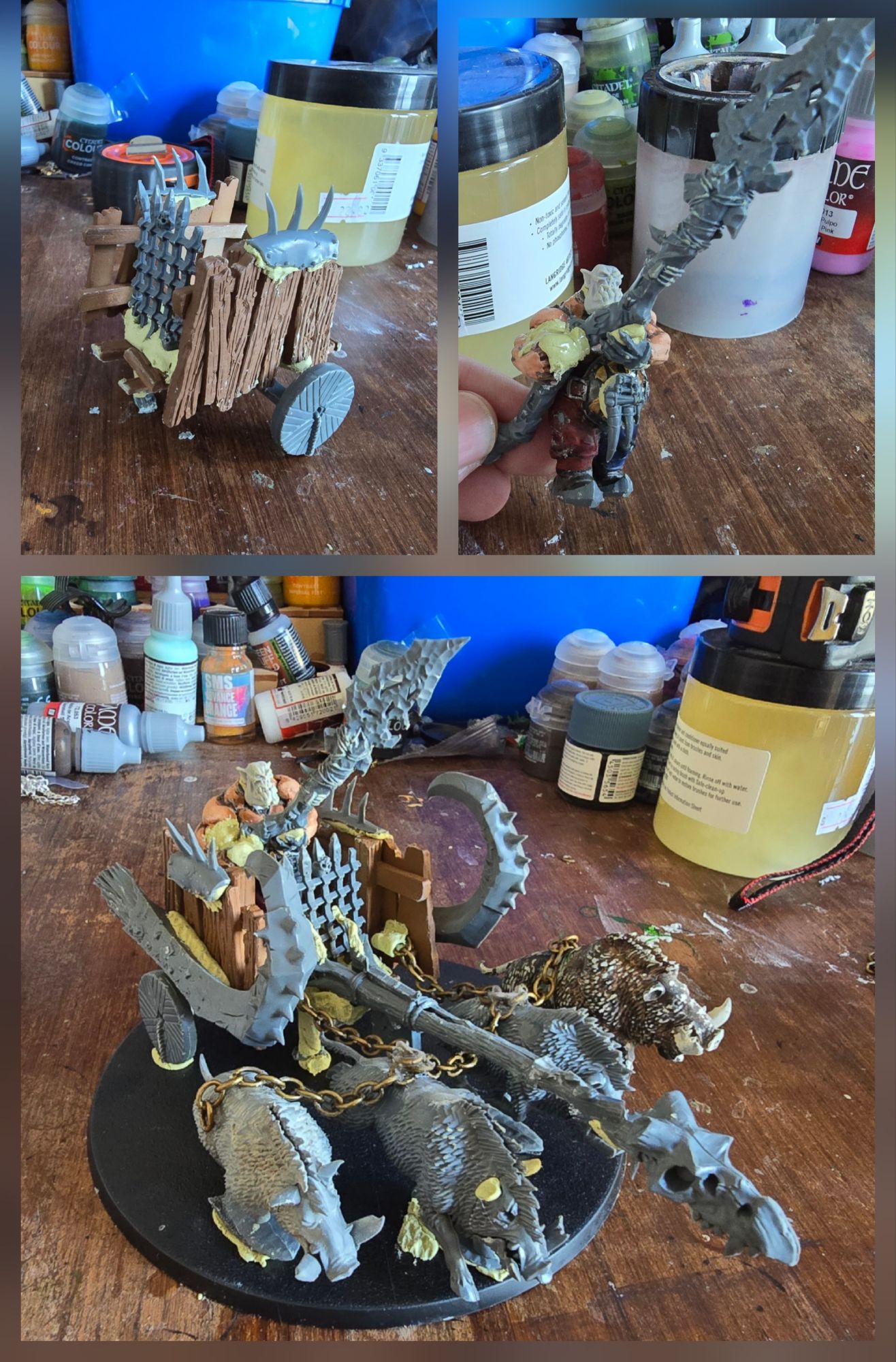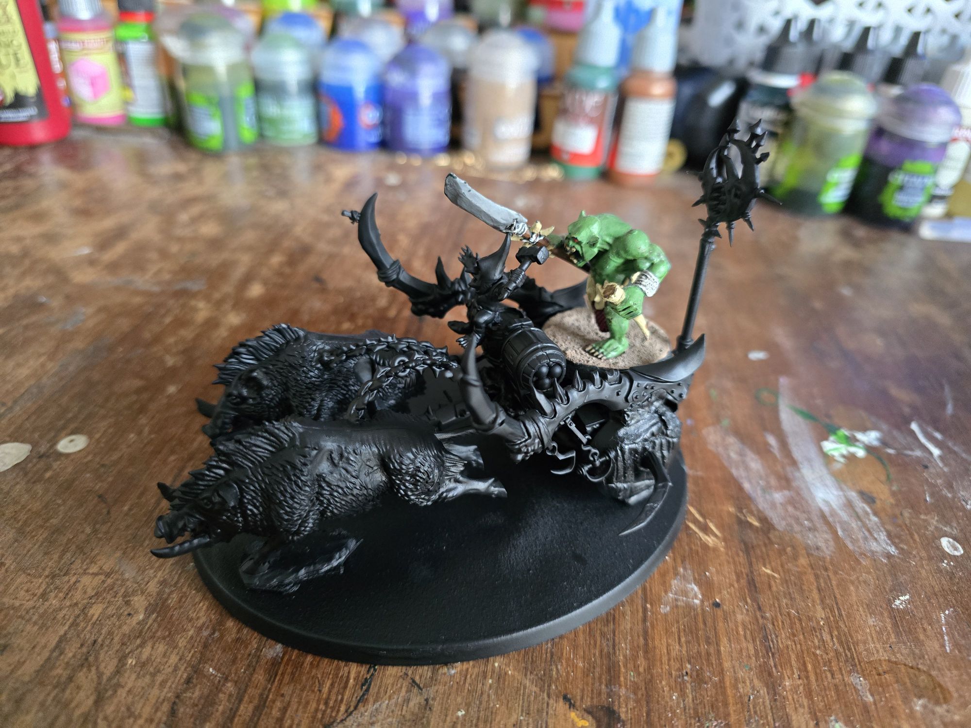 I showed you above how I made a big chariot pulled by a full team of Boars – I always thought that would be a cool centrepiece for Bonesplitterz and since they never got any mode releases, I just made my own. That’s on the same base as a Leviadon for example. This isn’t a path I’m going down myself, but I have heard chatter about it from other people. Food for thought.