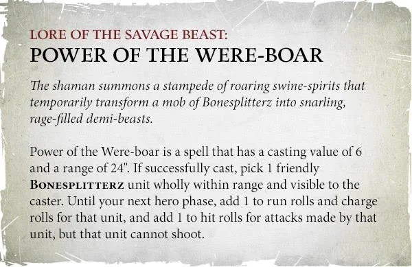 GW has always been too lazy to give the war baboons in that unit any actual rules, so there’s no point in even doing special conversions for them, unless you fancy the hobby opportunity. In my own case, I did fancy that opportunity – so I converted up the baboons as Were-boars, which doubles as a nod to the classic Bonesplitterz spell.