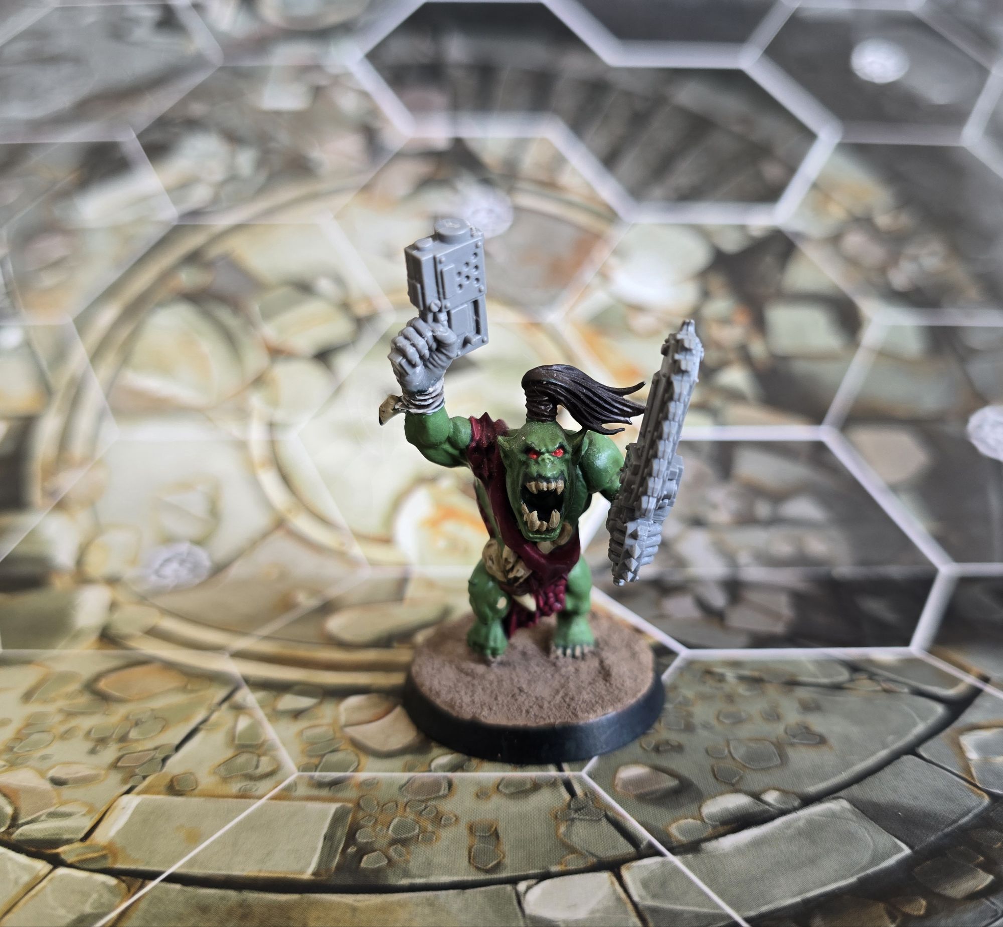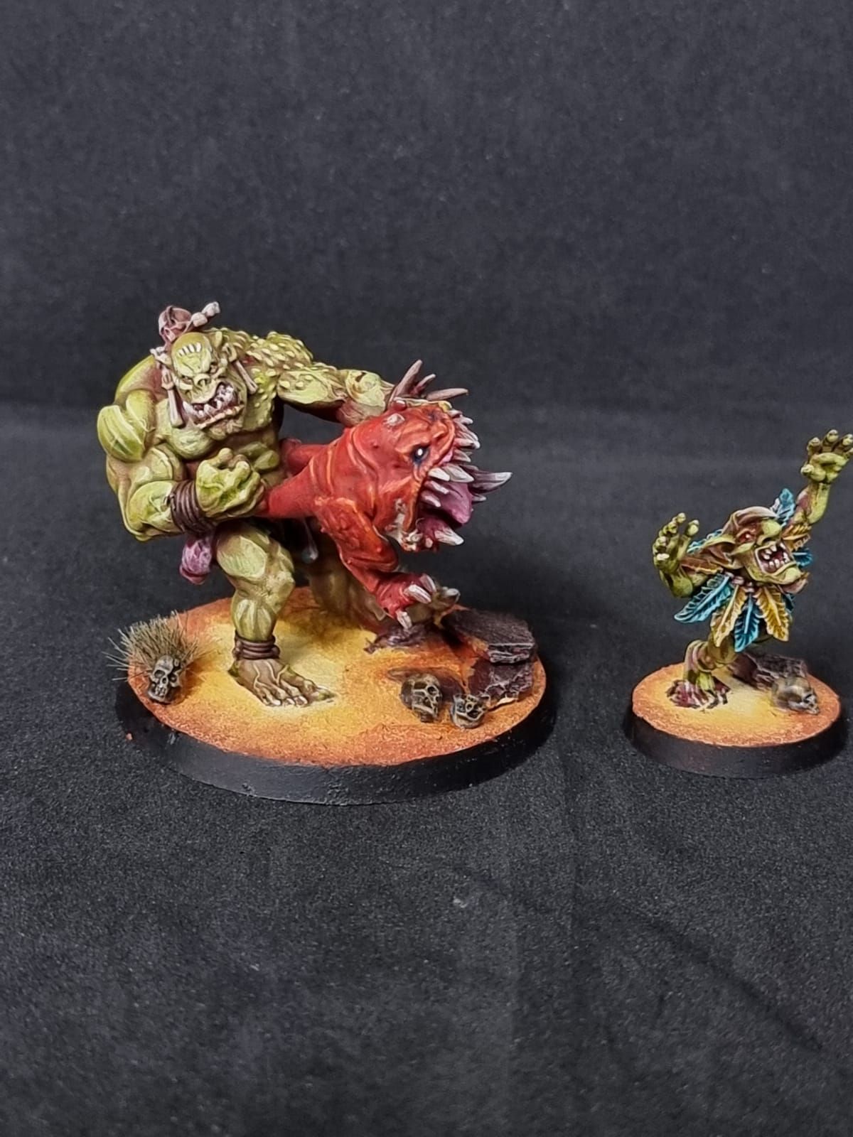 I added various monster trophy bling to mine but all you really need is one dude on a 40mm base to be the unit champ, and a lil Grot on a 25mm too. Shouldn’t be too hard to muster.